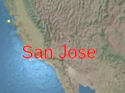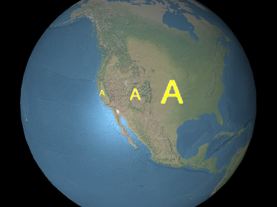 Below, the label is positioned at the center of the Earth but an eye offset makes it always appear on top of the Earth regardless of the viewer's or Earth's orientation.